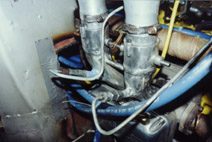 The mass of hoses you see in the various pictures are fuel and oil. There is a 12 litre drysump tank mounted inside the car just behind the firewall. We tried various off the shelf ignition systems but we ended up using a big Magneto from a plane. Let me assure you this ignition is by far the strongest I've seen and it is driven by the same chain that the injection pump is driven from.